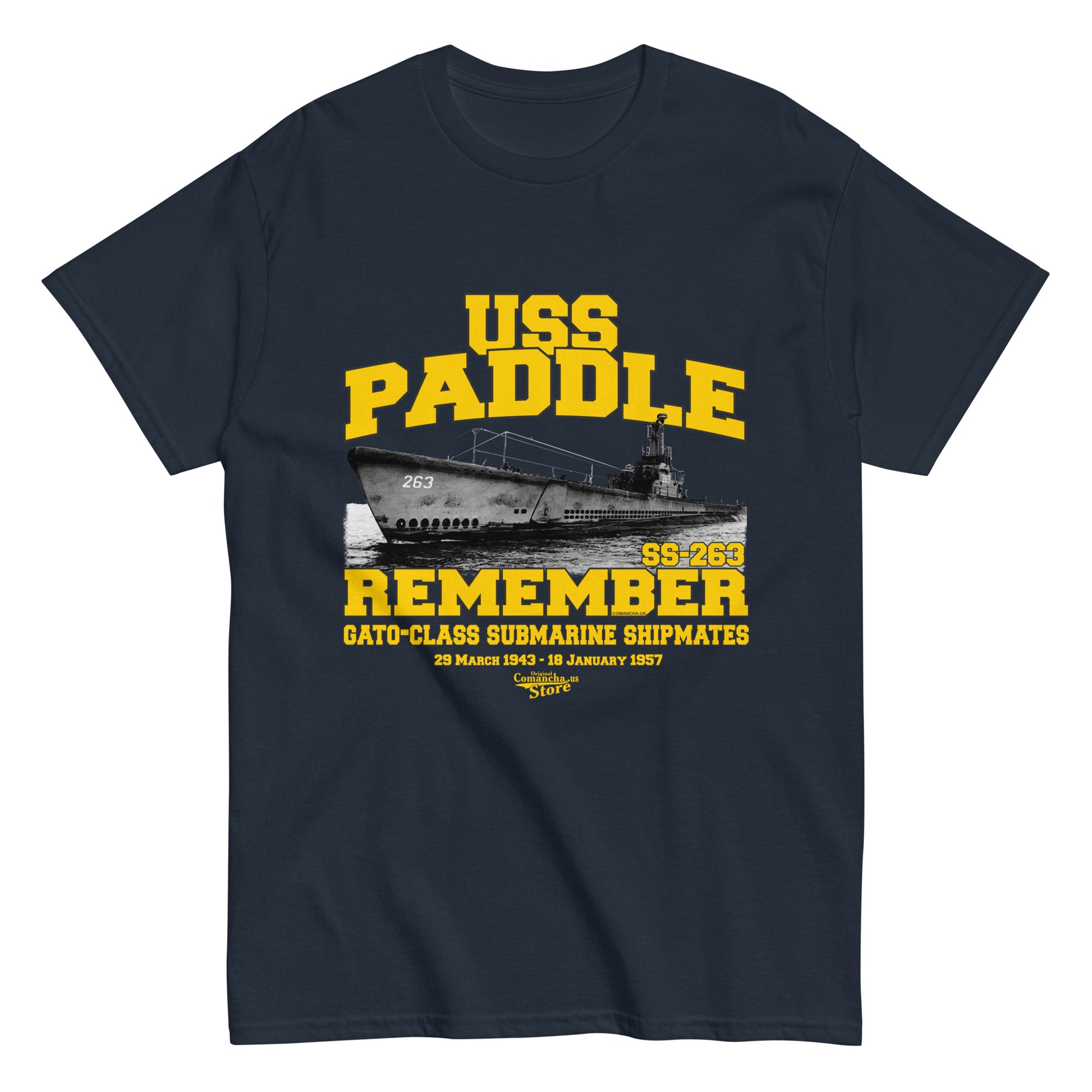 USS Paddle SS-263 Submarine t-shirt, USS Paddle (SS-263), a Gato-class submarine, was a ship of the United States Navy, Comancha T-shirts Store,