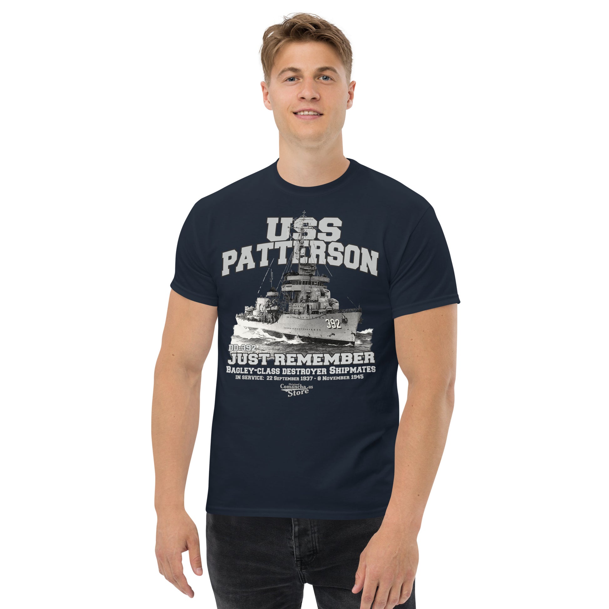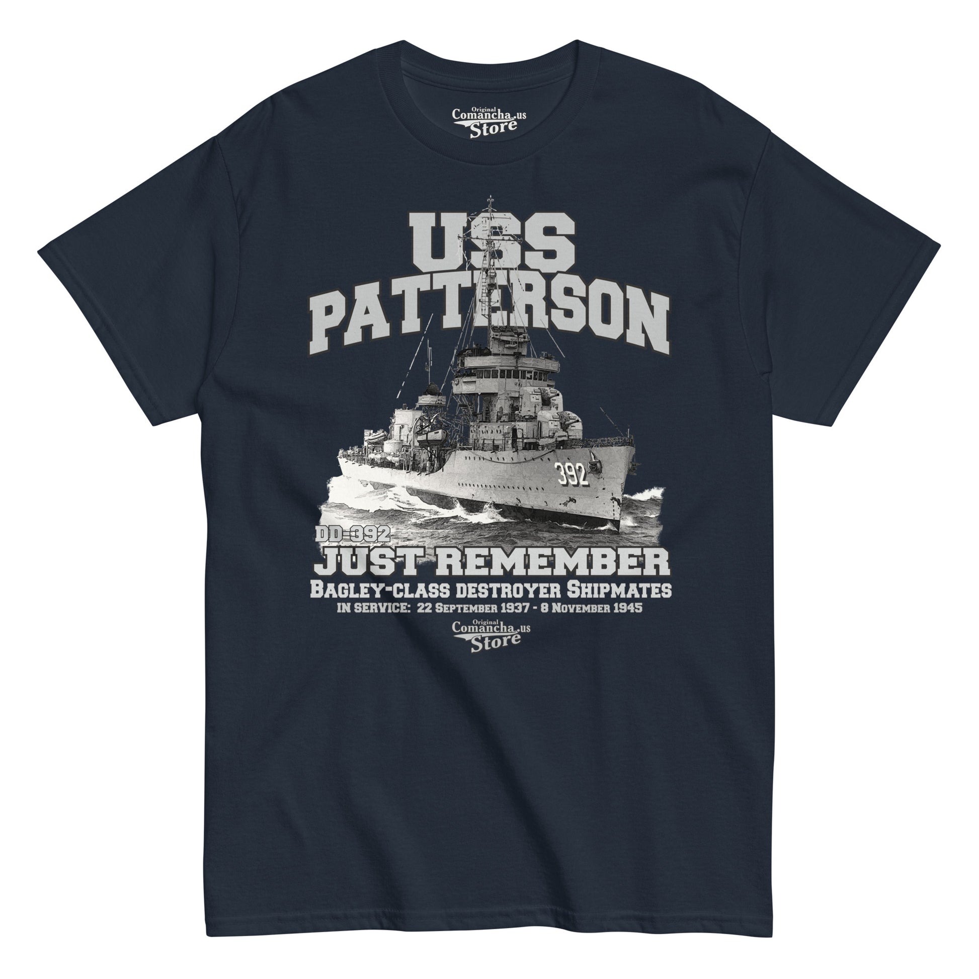 USS Patterson DD-392 t-shirt, USS Patterson DD-392 Shipmates, USS Patterson DD-392, a Bagley-class destroyer, was the second ship of the United States Navy. Comancha Graphics Store.