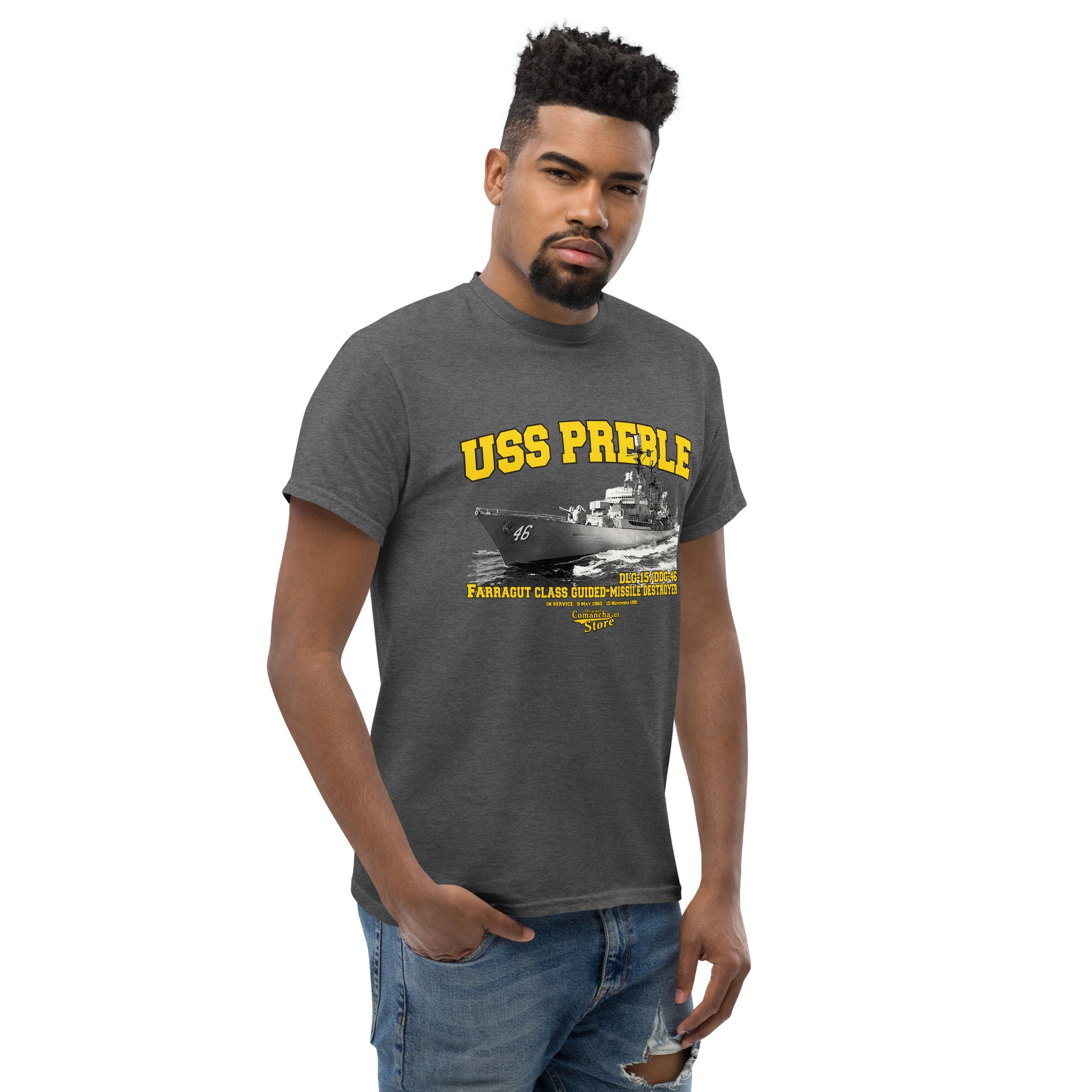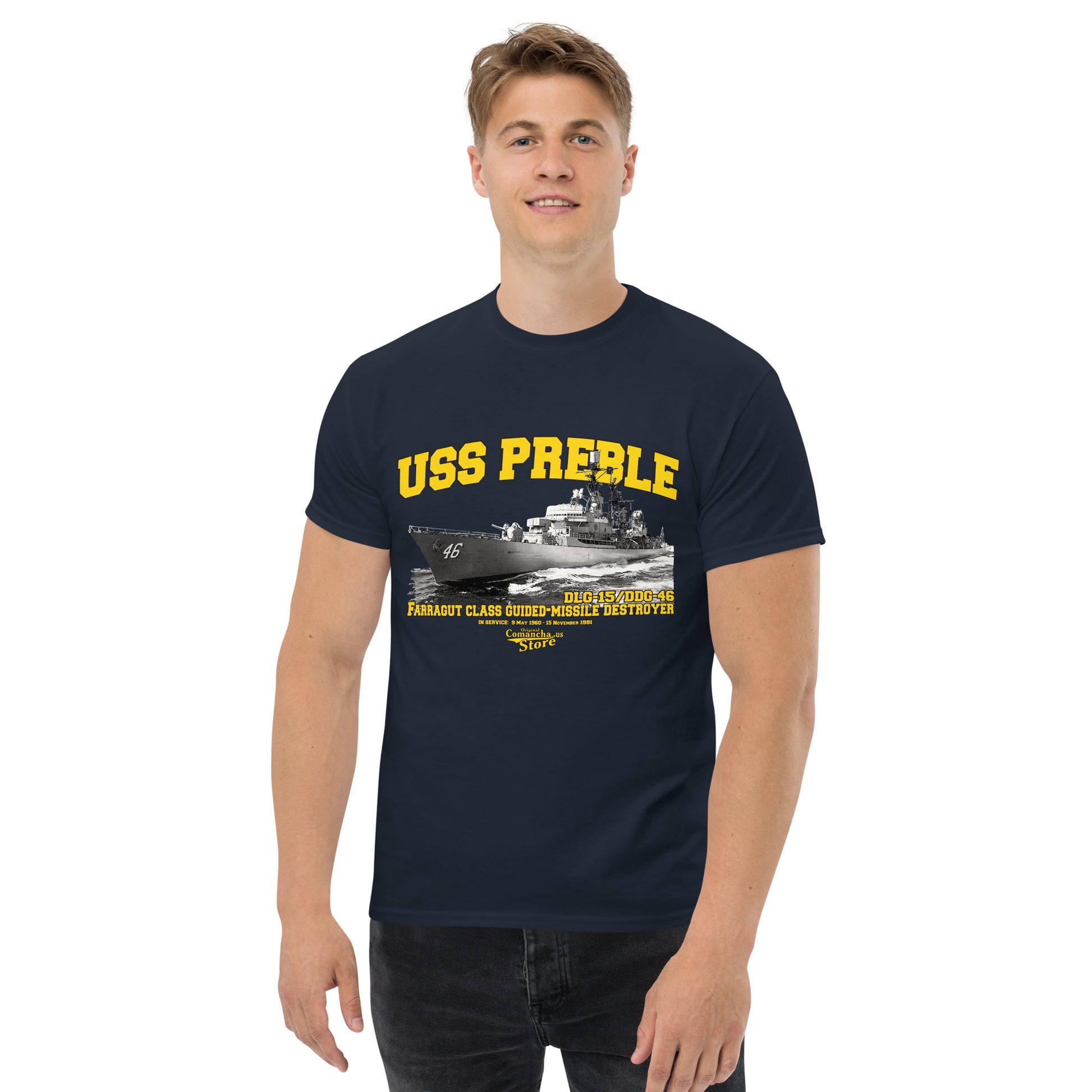 USS Preble t-shirt, USS Preble Shipmates tee, USS Preble DLG-15/DDG-46 t-shirt, USS Preble DLG-15/DDG-46 was a Farragut-class guided missile destroyer in the United States Navy. Comancha Graphics,