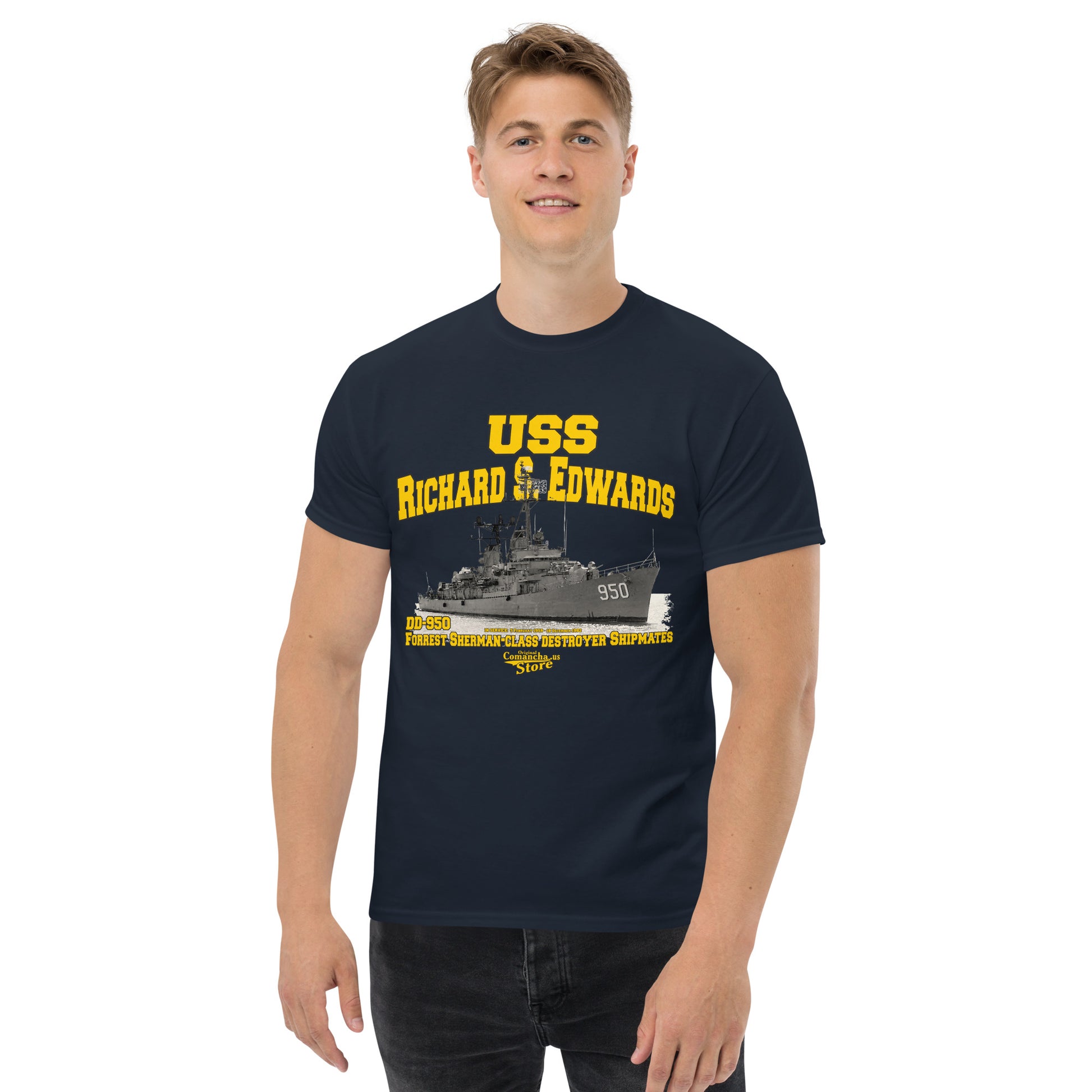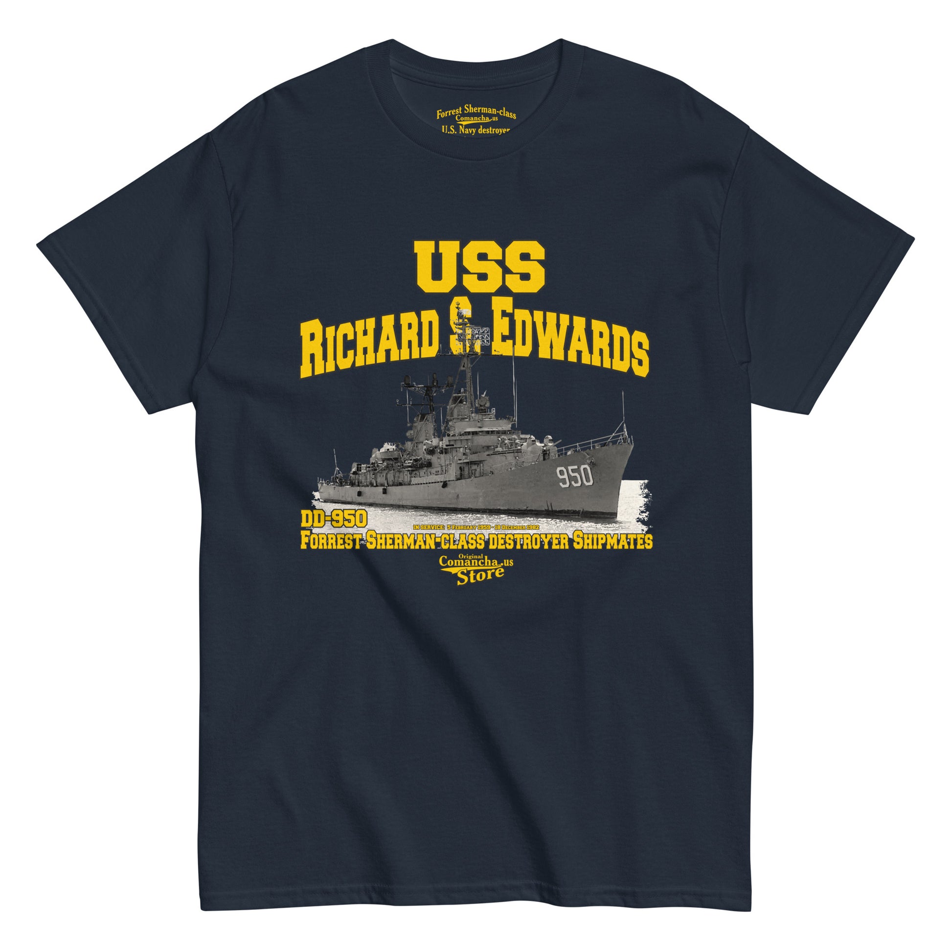 USS Richard S. Edwards DD-950 T-shirt, USS Richard S. Edwards DD-950 Shipmates T-shirt, USS Richard S. Edwards (DD-950), named for Admiral Richard Stanislaus Edwards USN (1885–1956), was a Forrest Sherman-class destroyer. Comancha Graphics.