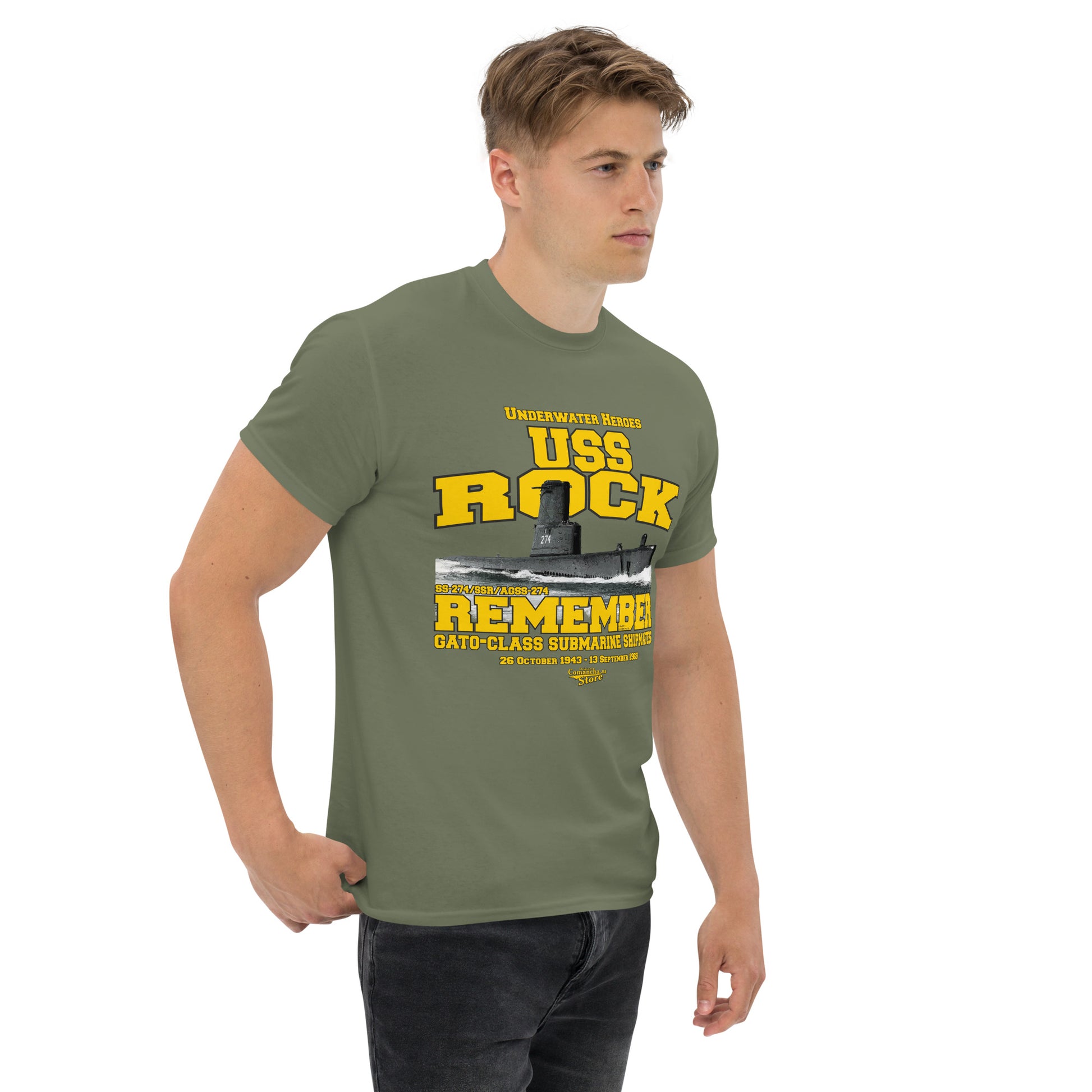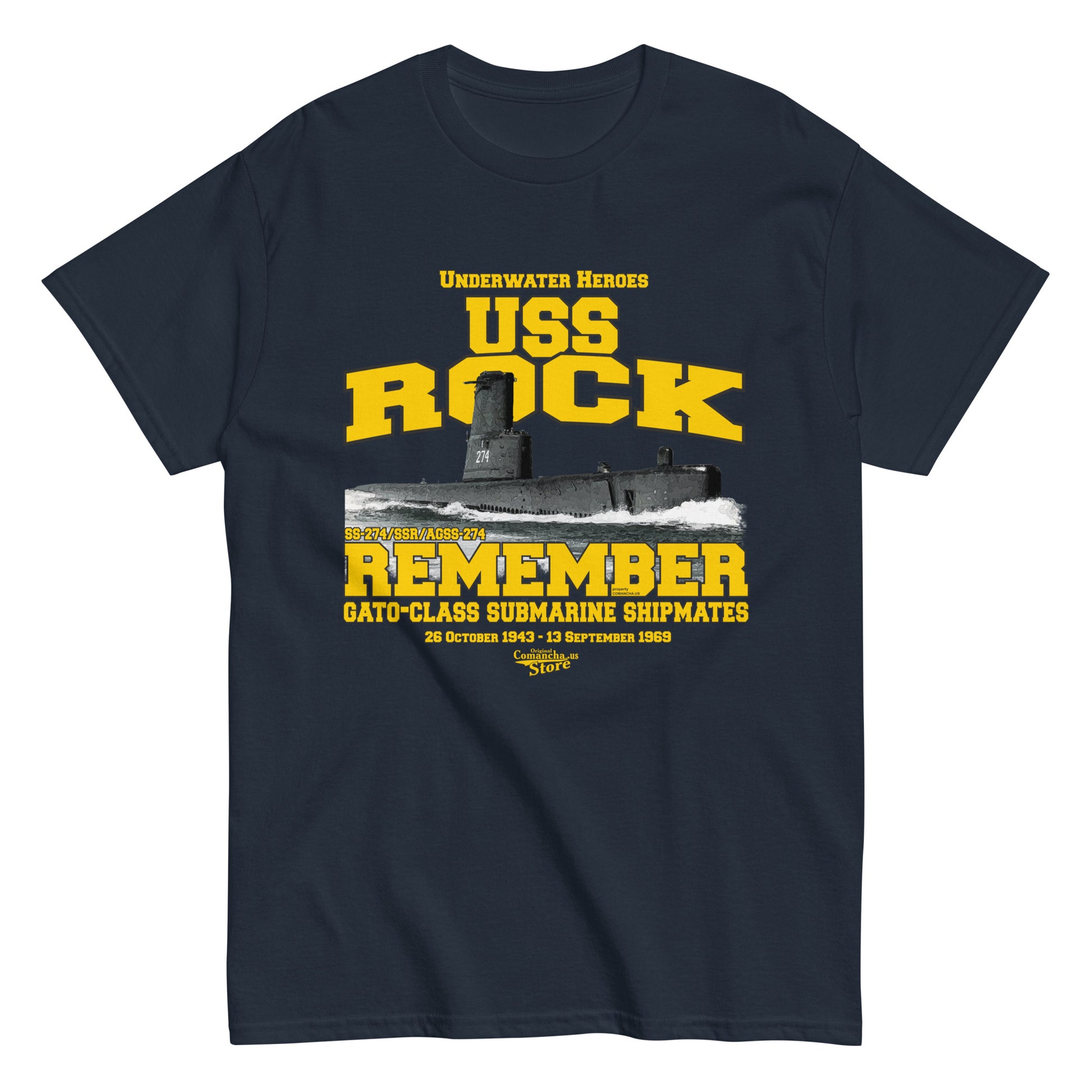 USS Rock SS/SSR/AGSS-274 Submarine t-shirt, USS Rock SS/SSR/AGSS-274), a Gato-class submarine, Comancha Store,