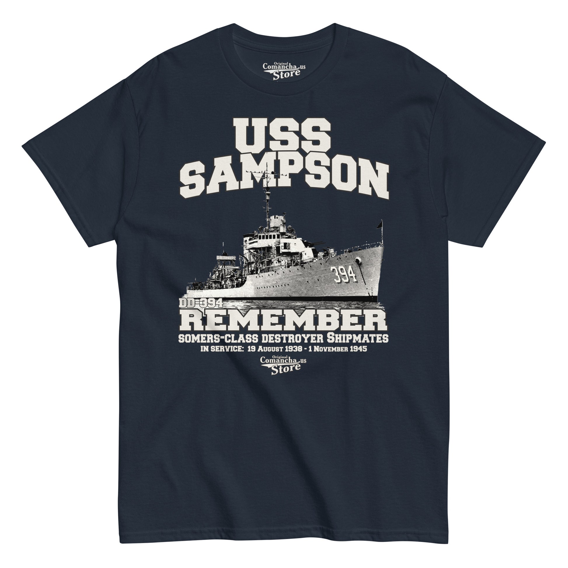USS Sampson DD-394 t-shirt, USS Sampson DD-394 Shipmates tee, The second USS Sampson (DD-394) was a Somers-class destroyer in the United States Navy. Comancha Store.