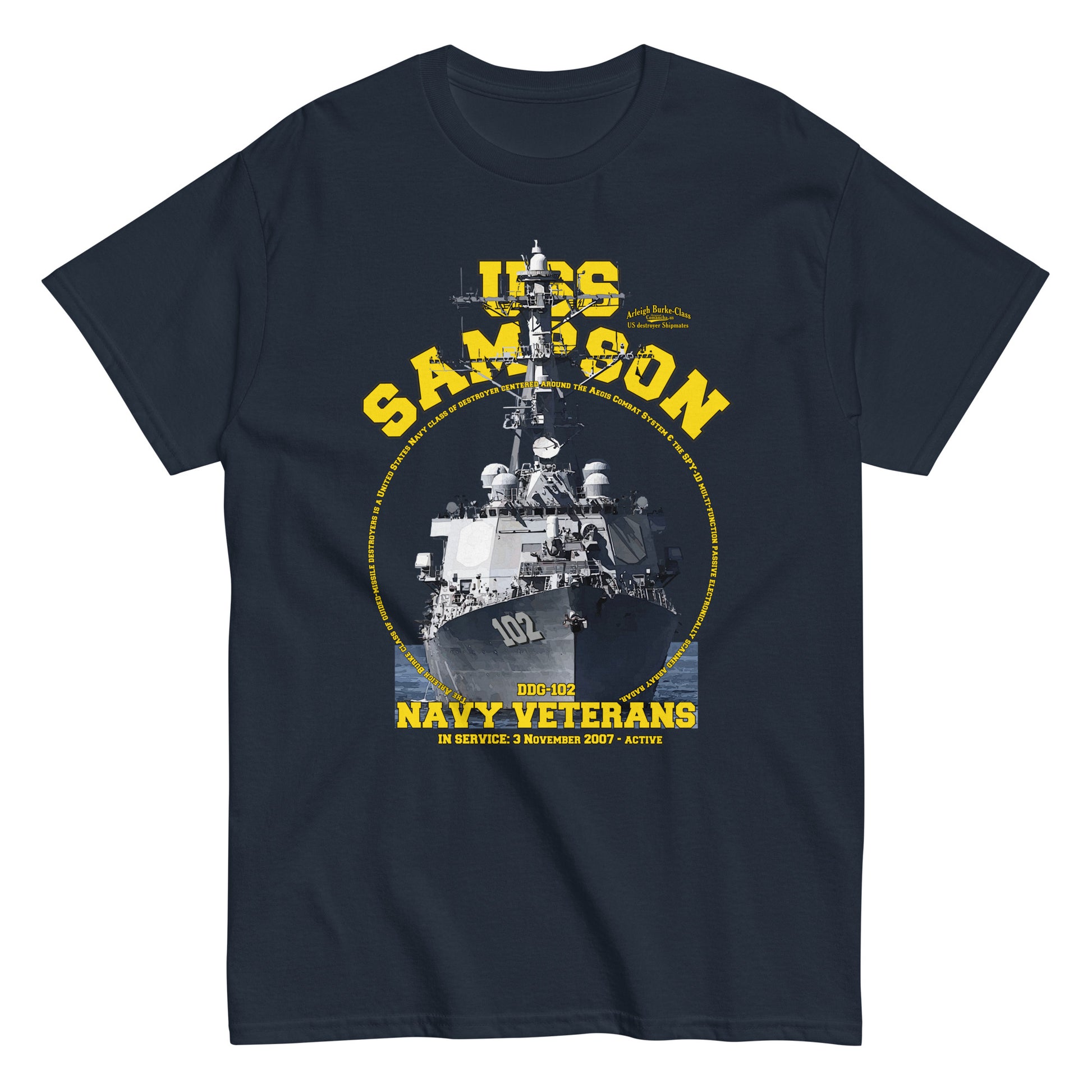 USS Sampson Shipmates t-shirt,USS Sampson (DDG-102) is an Arleigh Burke-class destroyer in the United States Navy.Comancha Store,