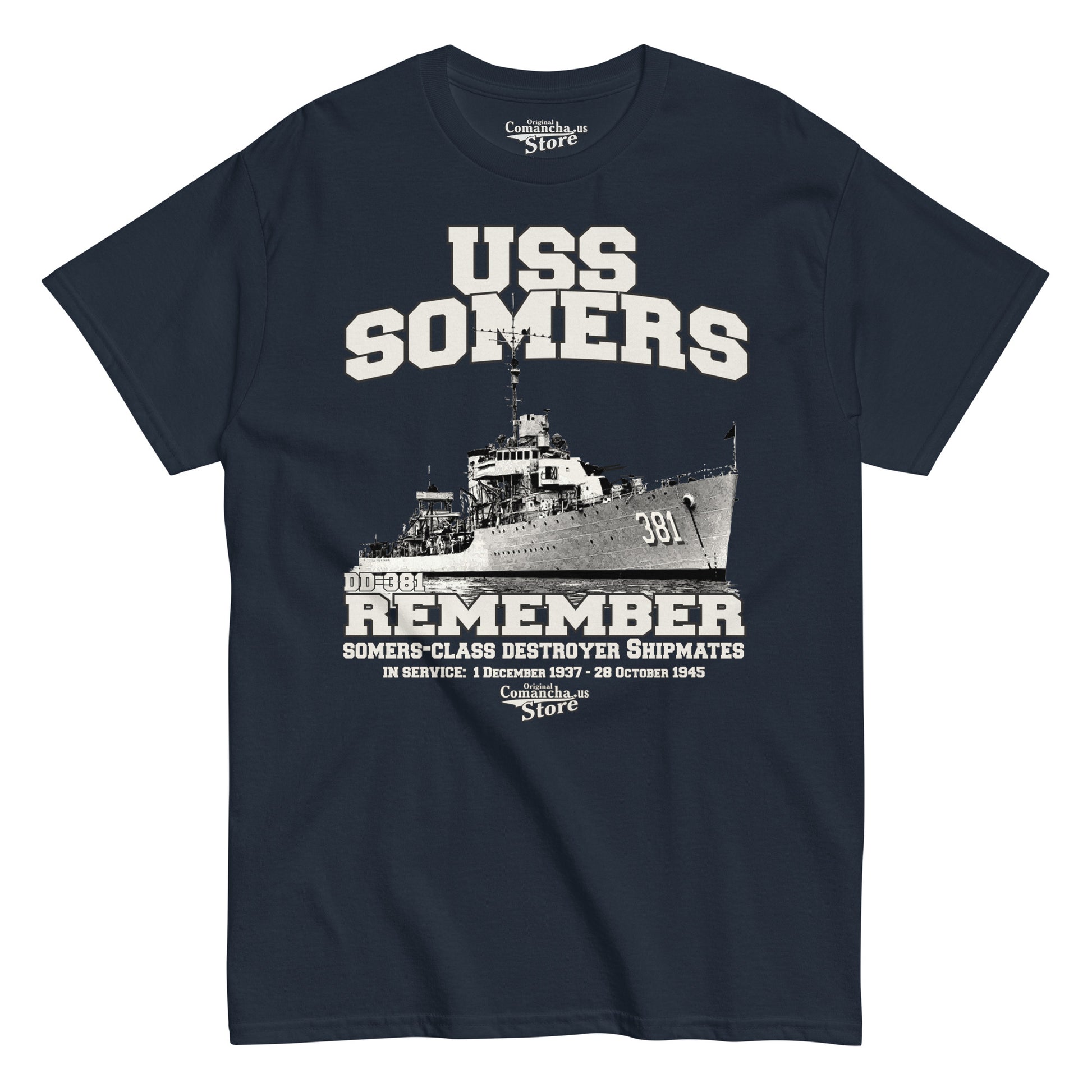 USS Somers DD-381 t-shirt, USS Somers DD-381 Shipmates tee, USS Somers DD-381 was a destroyer commissioned in the United States Navy from 1937 to 1945. She was the lead ship of the Somers-class. Comancha Graphics Store.
