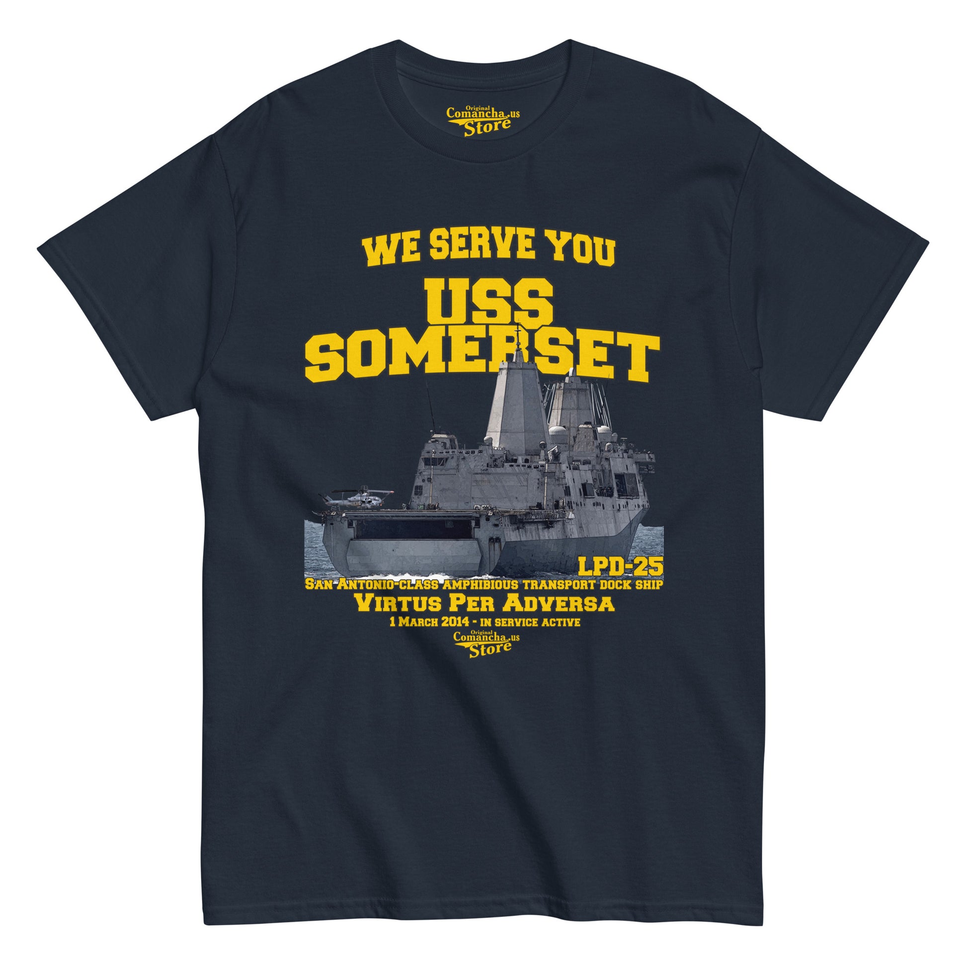 USS Somerset LPD-25 shipmates t-shirt, USS Somerset (LPD-25) is a San Antonio-class amphibious transport dock of the United States Navy, Comancha T-shirts Store,