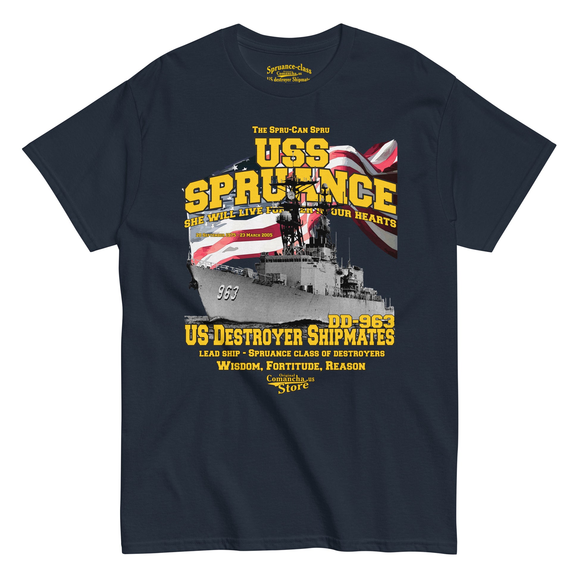 USS Spruance DD-963 destroyer tee, USS Spruance shipmates tee, Comancha store,