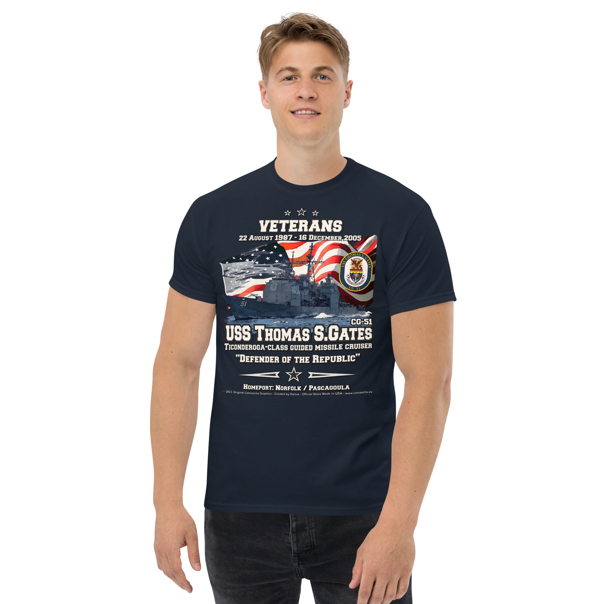USS THOMAS GATES CG-51 Missile Cruiser t-shirt, USS THOMAS GATES CG-51 Missile Cruiser Veterans T-shirt, Comancha Graphics,