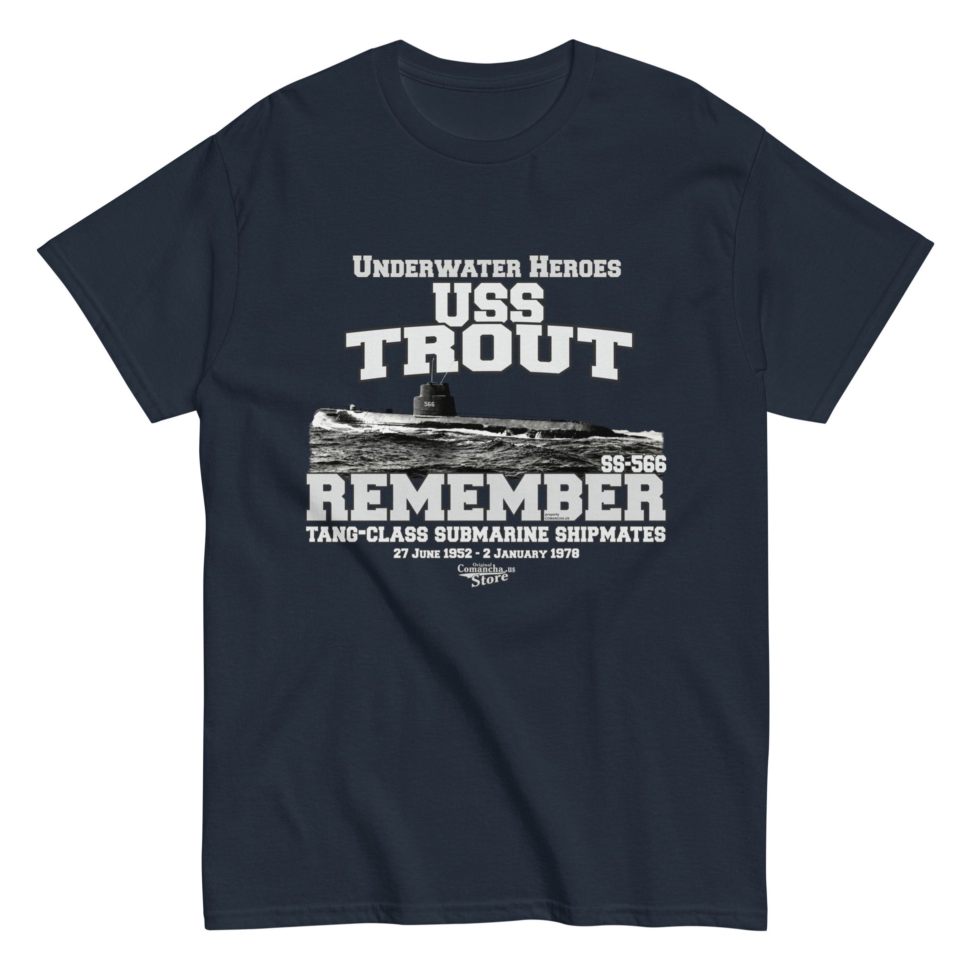 USS Trout SS-566 submarine t-shirt, USS Trout (SS-566), a Tang-class submarine, was the second ship of the United States Navy , Comancha Store,