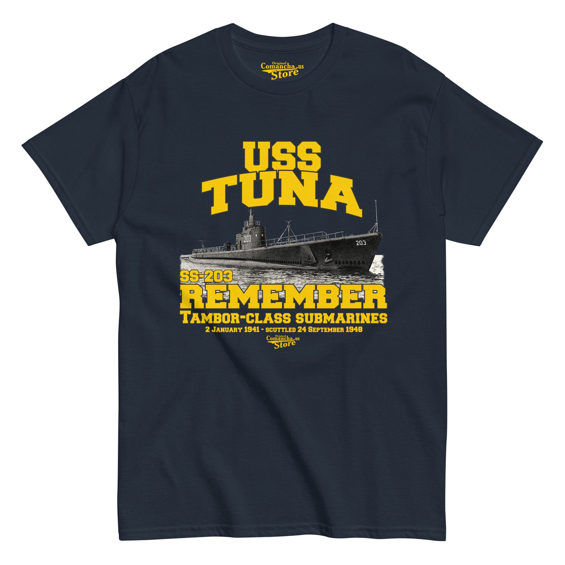 USS Tuna SS-203 Submarine t-shirt, USS Tuna (SS-203) was a United States Navy Tambor-class submarine, serving in the Pacific during World War II, Comancha T-shirts Store,
