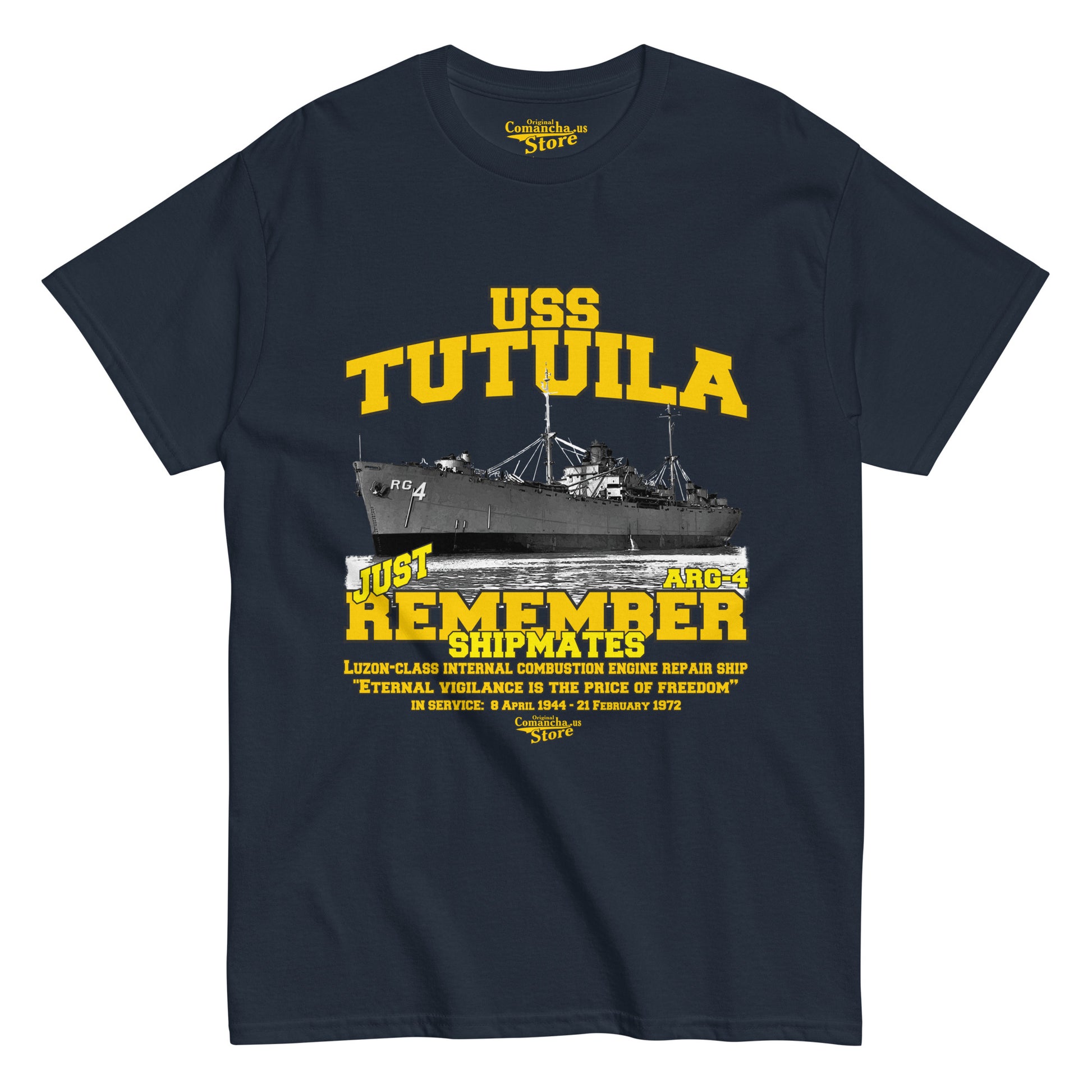 USS Tutuila ARG-4 tee, USS Tutuila ARG-4 Shipmates t-shirt, USS Tutuila (ARG-4) was a Luzon-class internal combustion engine repair ship that saw service in the United States Navy during World War II, The Korean War, and The Vietnam War, Comancha T-shirts Store,