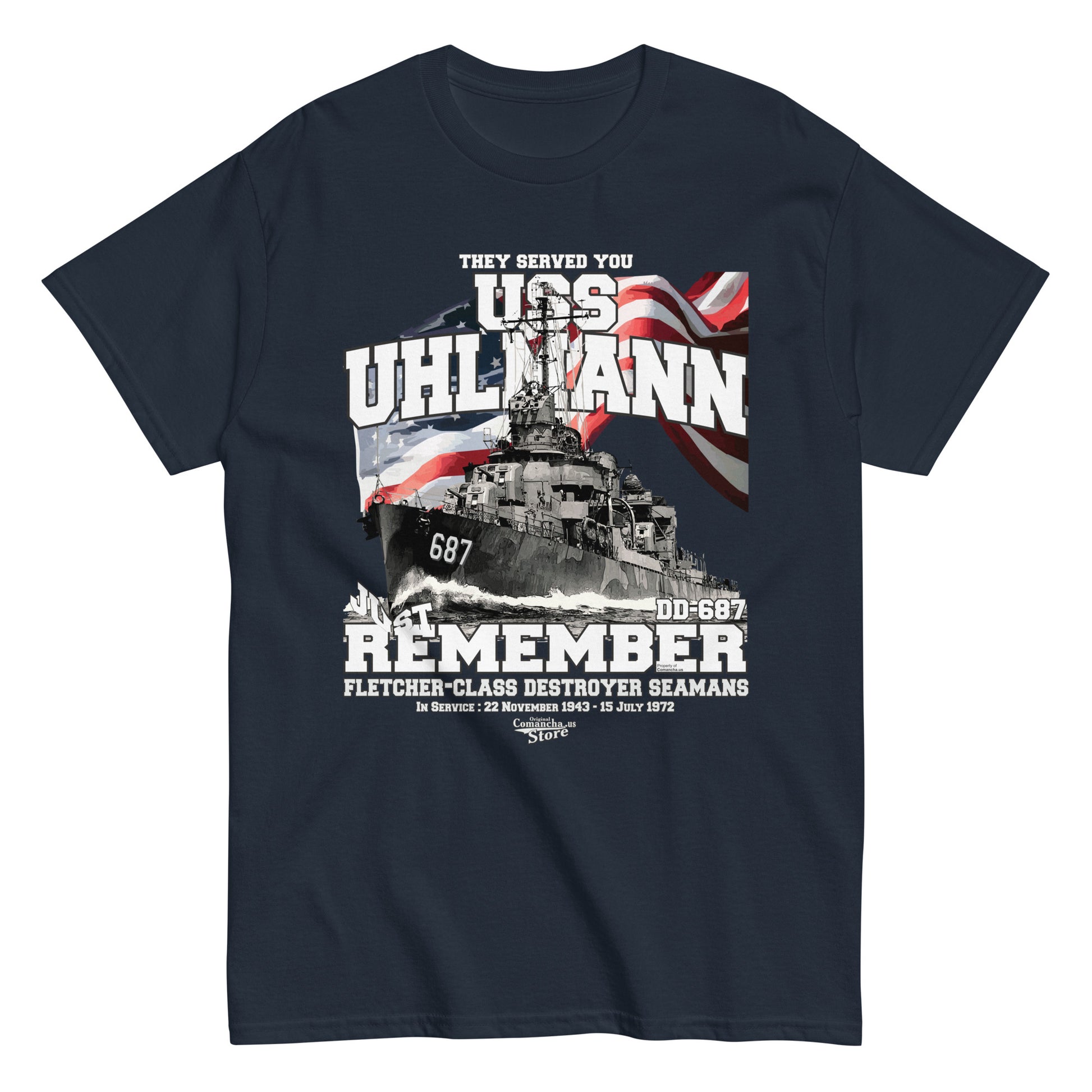 USS Uhlmann DD-687 destroyer t-shirt, USS Uhlmann (DD-687) was a Fletcher-class destroyer, Comancha t-shirts Store,