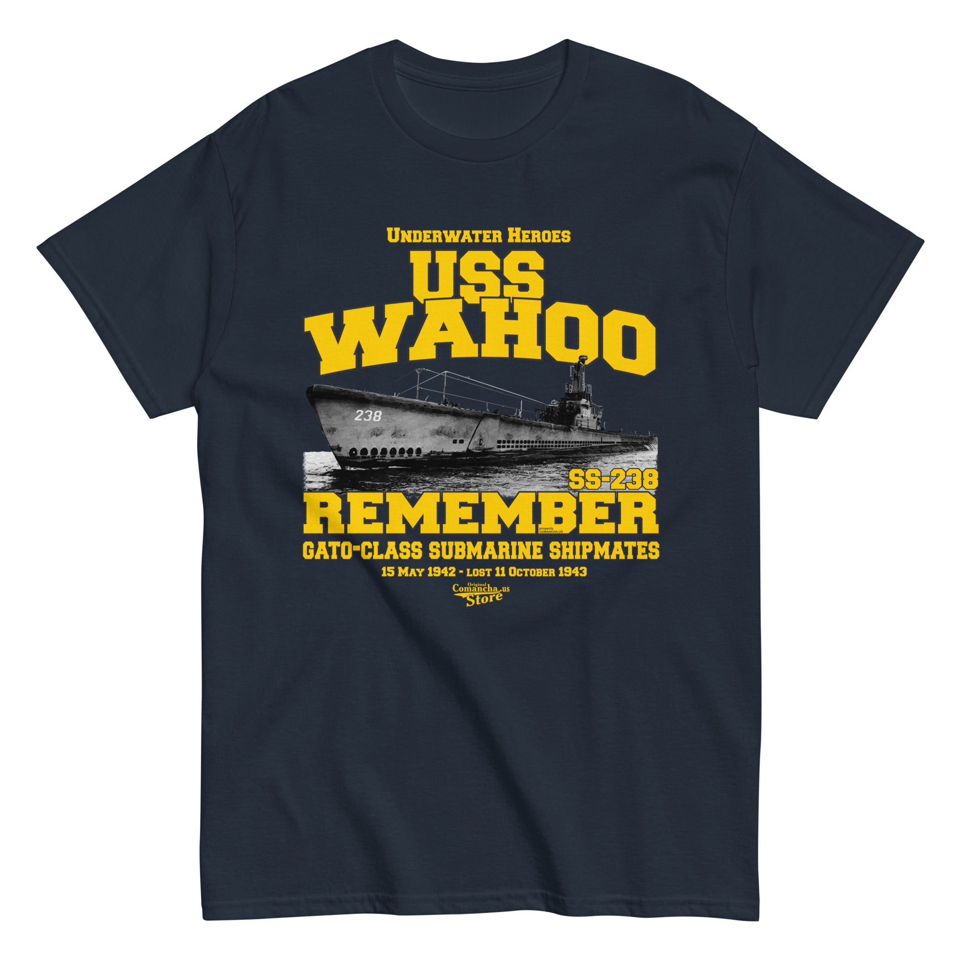 USS Wahoo SS-238 Submarine t-shirt, USS Wahoo (SS-238) was a Gato-class submarine, Comancha online Store,