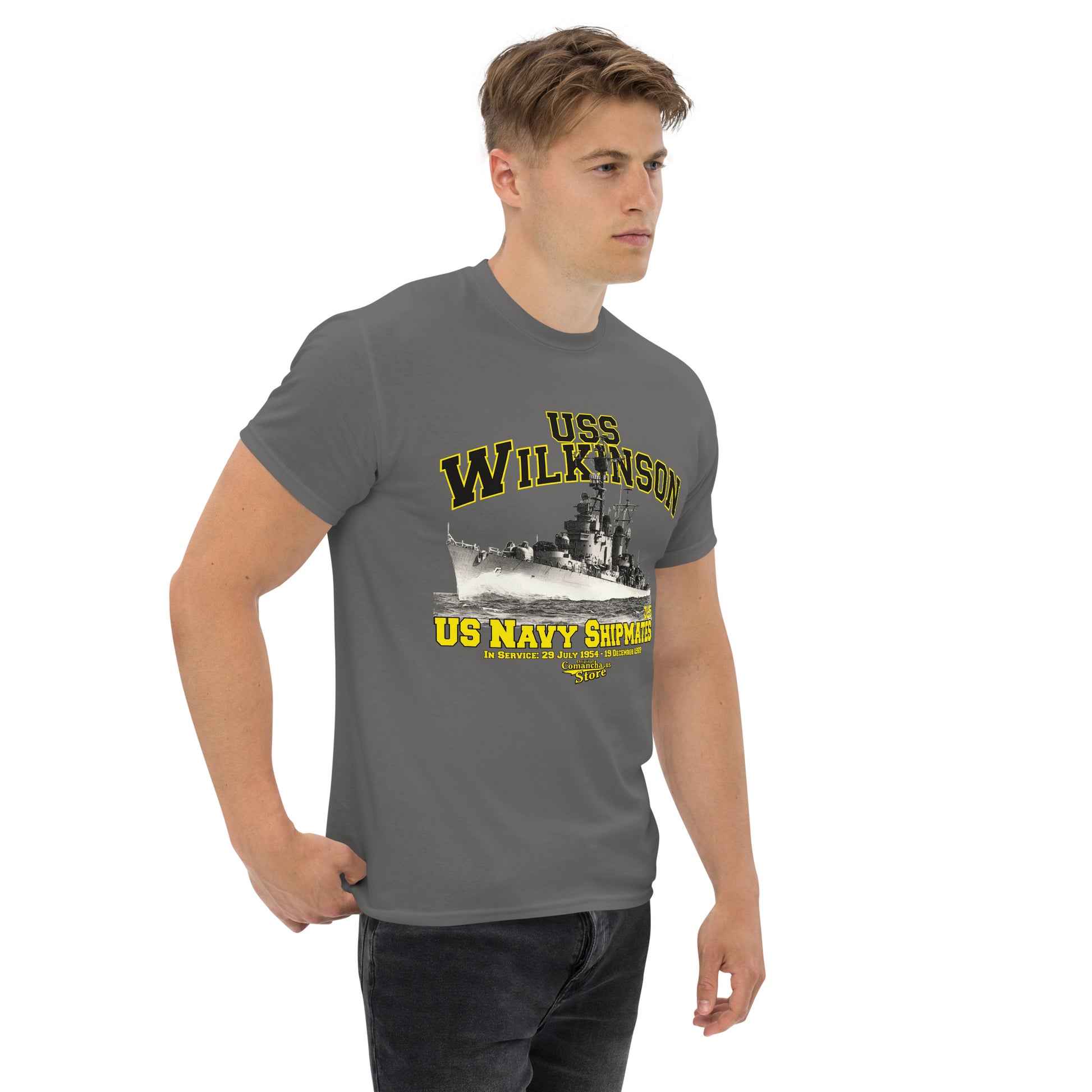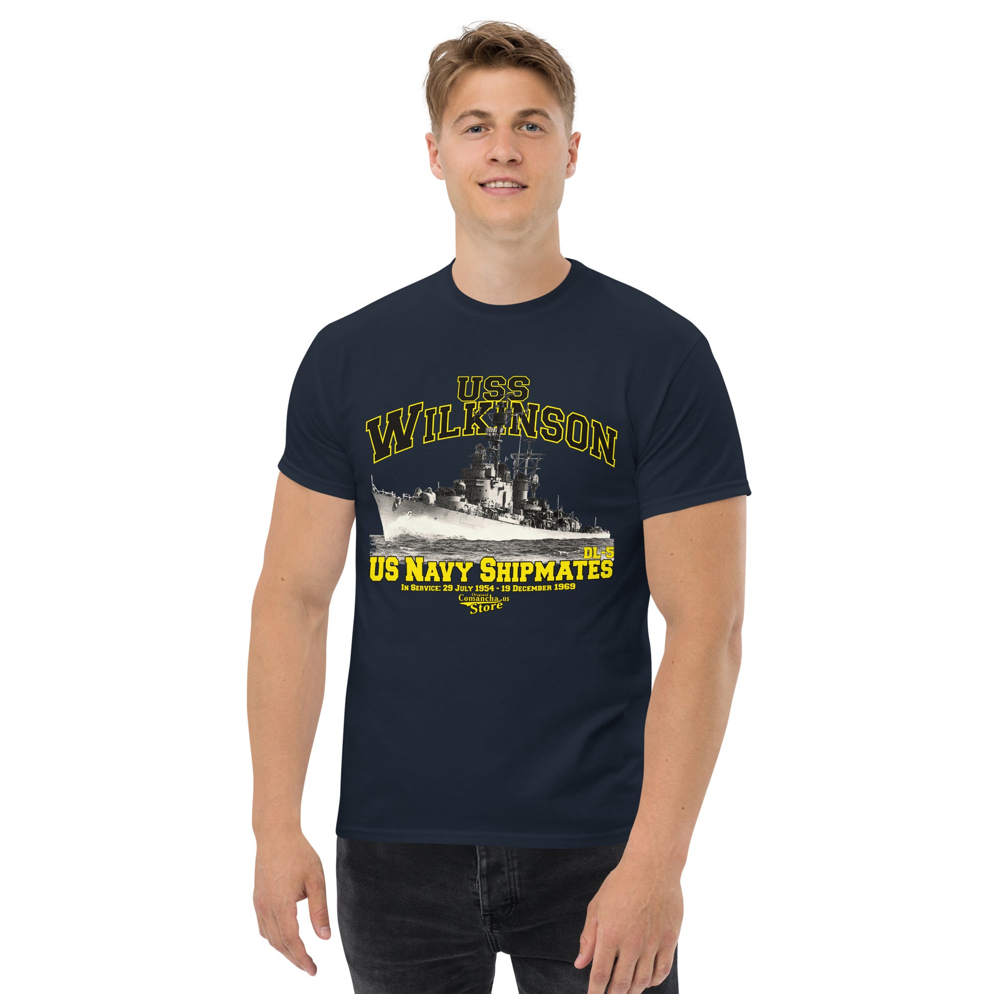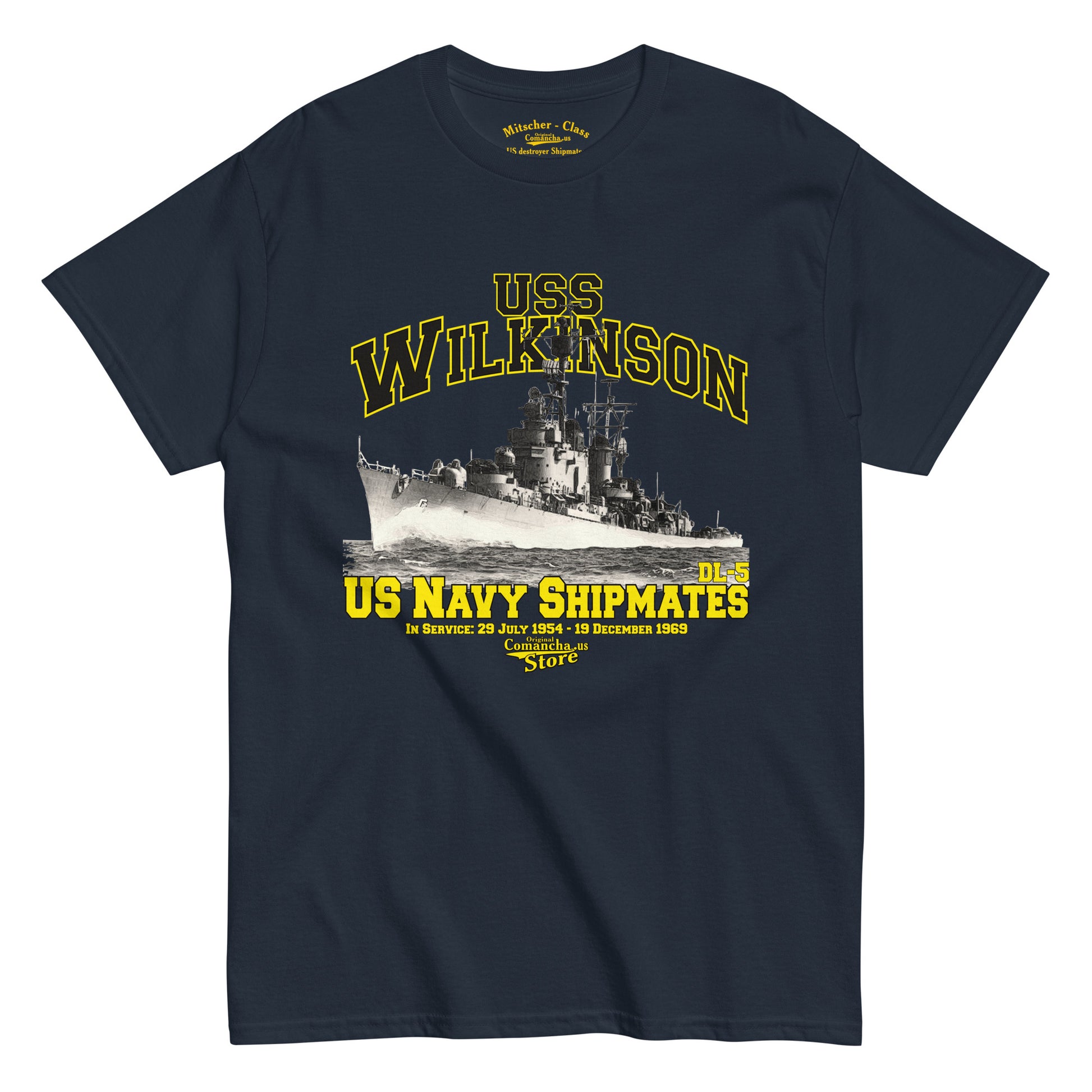 USS Wilkinson (DL-5) t-shirt, Mitscher class destroyer in the United States Navy. She was named for Vice Admiral Theodore Stark "Ping" Wilkinson USN (1888–1946). Comancha Store,