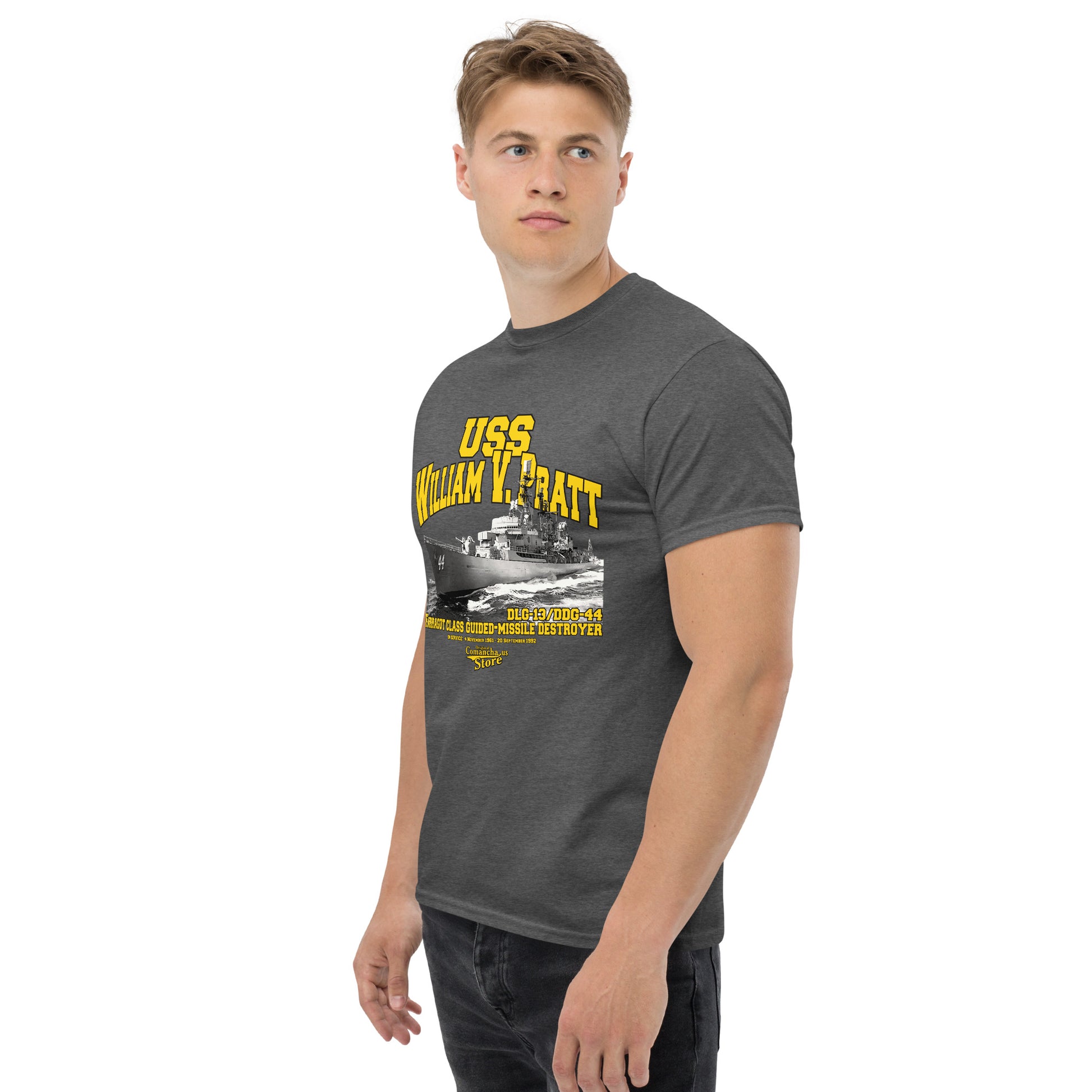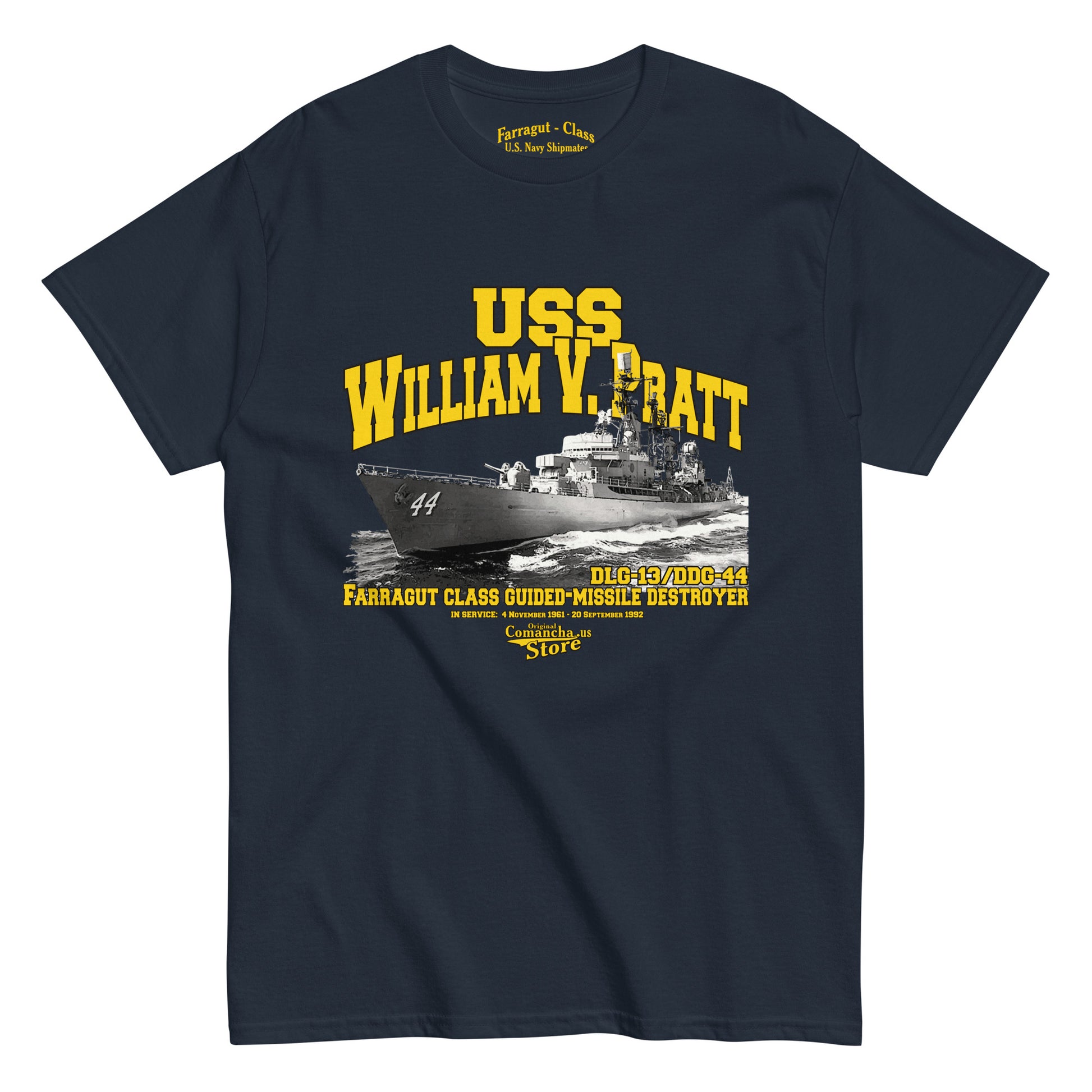 USS William V. Pratt tee, USS William V. Pratt Shipmates tee, USS William V. Pratt DDG-44 t-shirt, USS William V. Pratt DLG-13/DDG-44 was a Farragut-class destroyer in the service of the United States Navy. Comancha Graphics,
