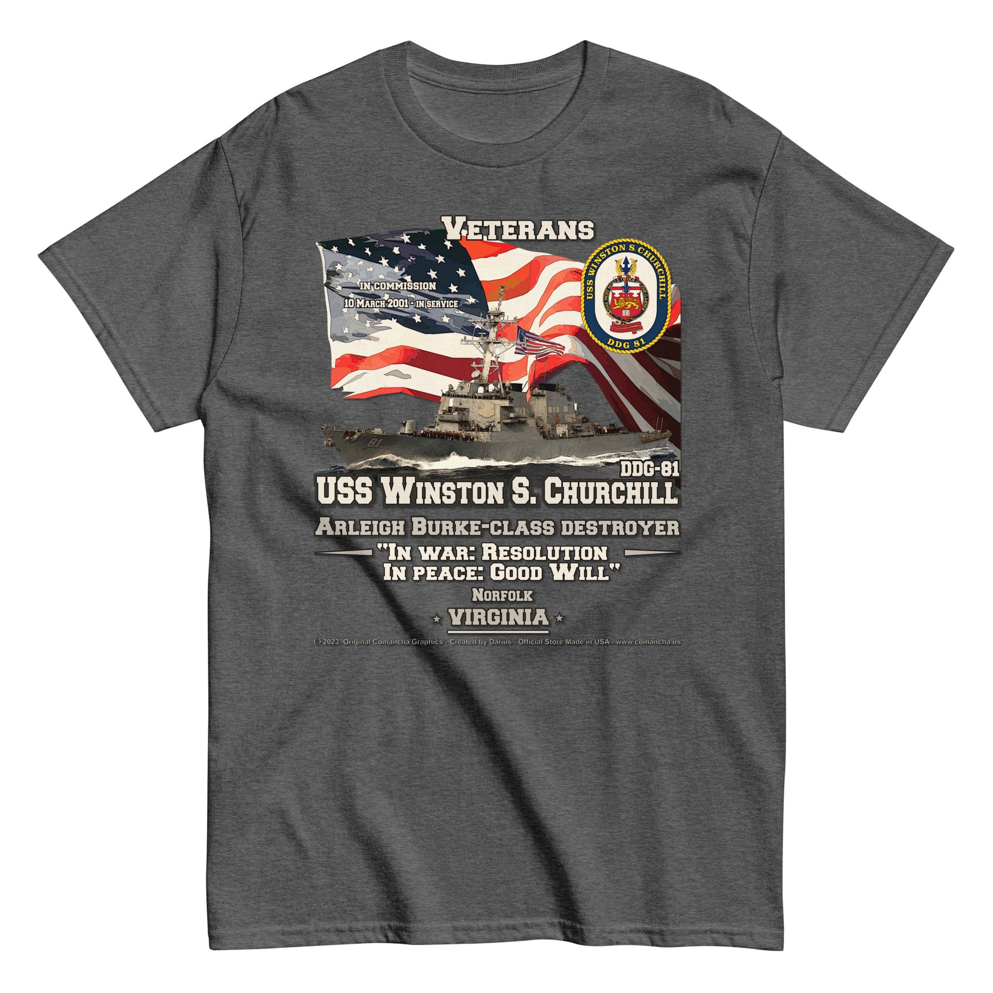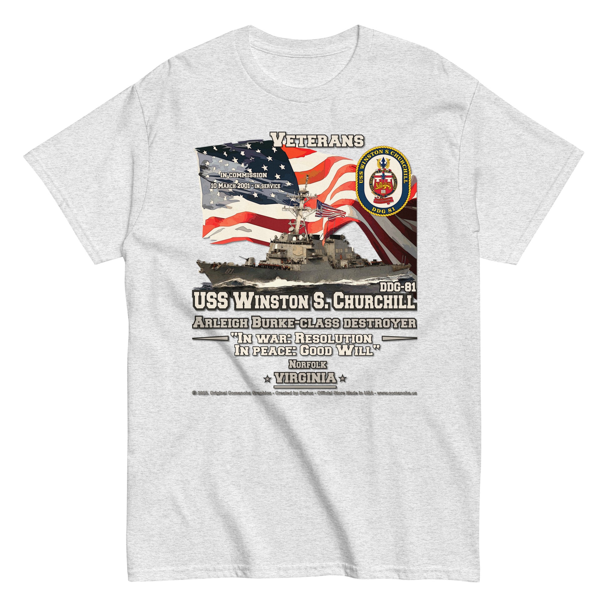 USS Winston Churchill DDG-81 Destroyer, Arleigh Burke Class destroyer t-shirts, Comancha Design,